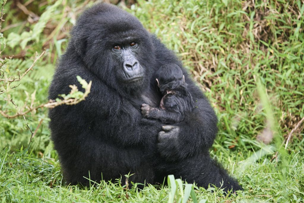 Anfangs ist das Junge komplett hilflos. Die Mutter trägt es am Bauch, später auf dem Rücken. Erst mit zweieinhalb bis drei Jahren sind junge Gorillas selbständiger und verbringen nicht mehr so viel Zeit bei der Mutter.